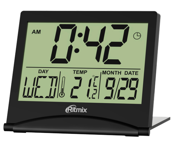 Модель часов с будильником Ritmix CAT-042 отличается компактным дизайном, чрезвычайно удобным как для дома, так и для путешествий. Складной корпус, толщина которого в сложенном виде составляет 1 см, позволяет брать часы с собой куда угодно, при этом, не занимая много места.