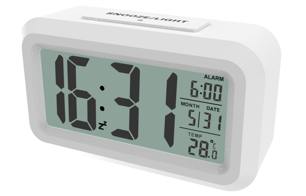 Цифровые часы-будильник с подсветкой экрана, датчиком освещенности и комнатным термометром.